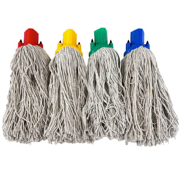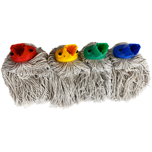 Plastic Socket Cotton Yarn Mop Heads are a general purpose mop head, ideal for a variety of cleaning tasks. Available in a choice of colours, these mops can be used as part of a colour coded cleaning system. The mop heads feature plastic sockets, held by galvanised steel clips and cotton twine strands. Ideal for use in schools, nurseries, hotels, nursing homes, hospitals etc. An ideal low cost option to mopping.