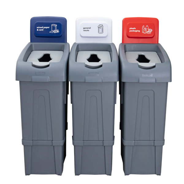The Procycle 80ltr Recycling Bin is a practical solution for waste management and segregation. The Procycle bins are extremely durable, manufactured from robust, injection moulded polypropylene. The bins modular design allows you to build your own recycling station, or can be used independently. The design of the bin features an aperture to the front of the bin that allows you to attach refuse sacks to, whilst the lid can be lifted allowing for the disposal of larger waste items, or removed totally if you require an open topped bin. The bins are fitted with a colour coded back panel that identifies different waste types, allowing visible identification for recycling purposes.