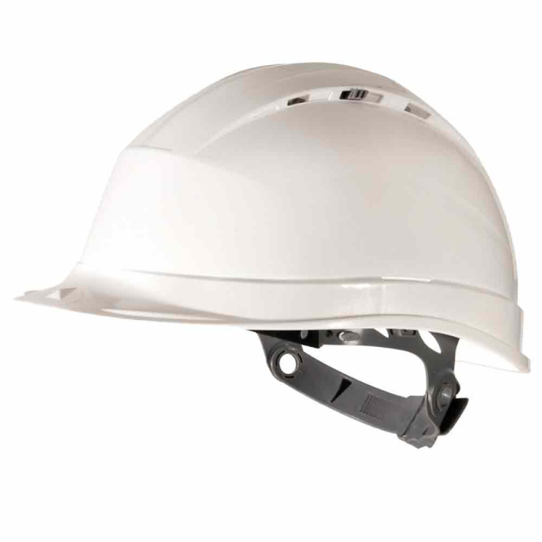 Delta Plus Quartz I Safety Helmets are manufactured from ventilated UV-resistant, high density polypropylene (PP). The helmets feature a polyethylene harness that has 8 fixing points, foam sweat band and manual adjustment to fit head sizes from 53 - 63cm in size. The head band can also be adjusted to fit two possible positions, either top or low, for a better, more comfortable fit.