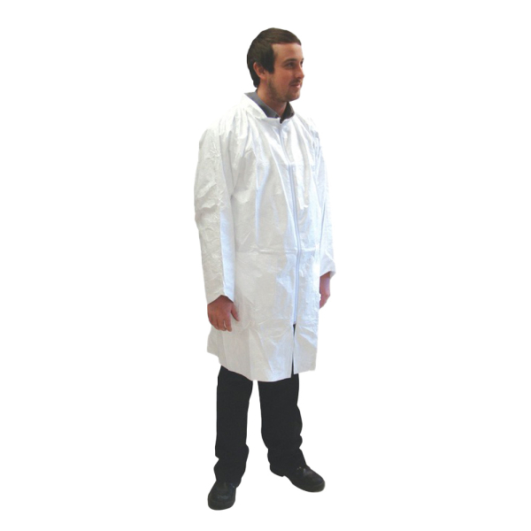 The Tyvek Classic Laboratory Coat offers a barrier against many inorganic chemicals in low concentrations and particles larger than 1μm. The coat also offers protection against particulate radioactive contamination and reliable Type 5 and 6 protection. The coat is permeable to both air and water vapour, allowing the fabric to breathe and is very soft, light and flexible and feels pleasant against the skin. Resistant to low-level liquid aerosols and low concentrations of water-based chemicals.
